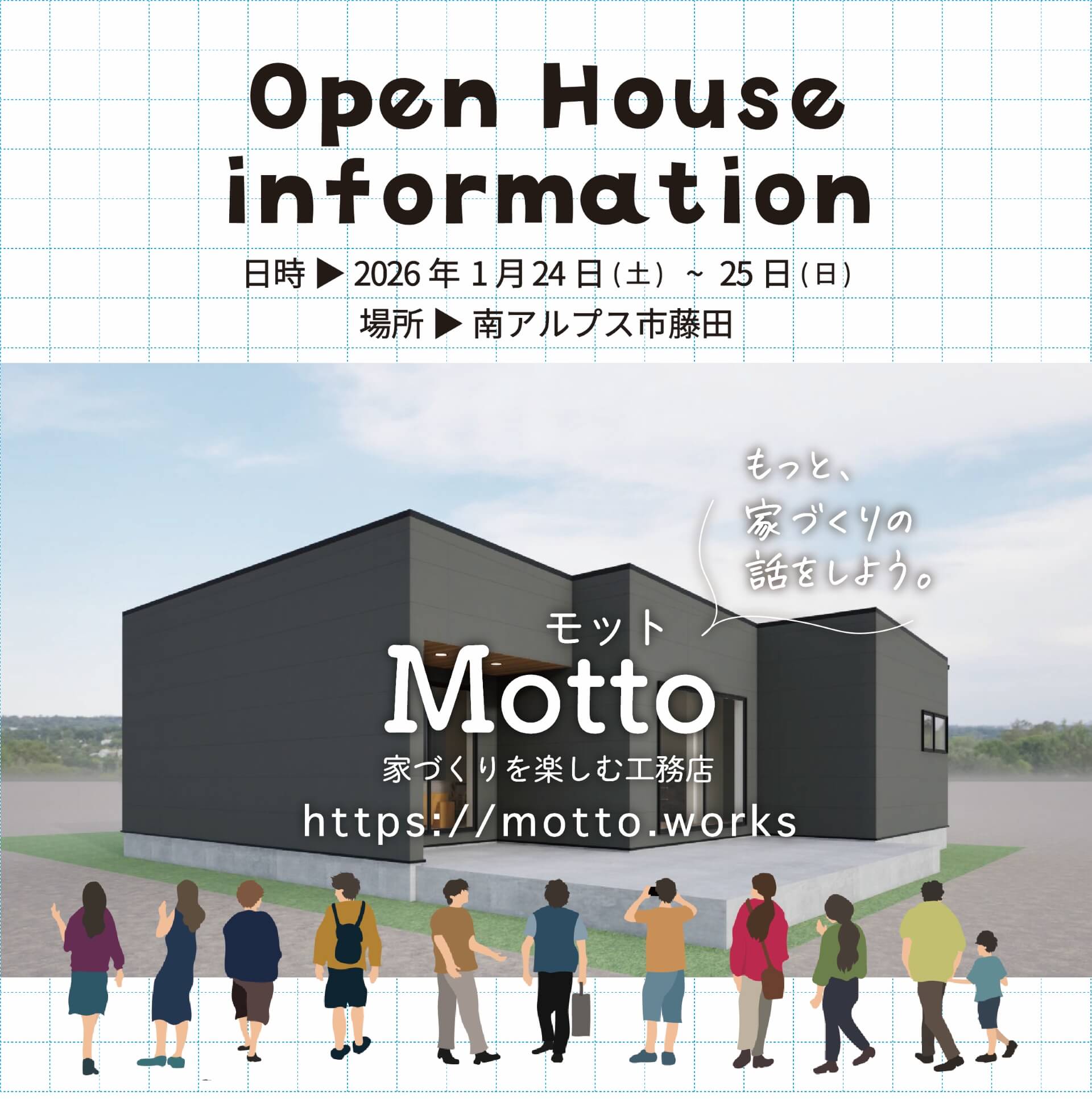 オーナー様のご厚意によりOPEN HOUSEを開催いたしますので、Mottoの家づくりに興味のある方はぜひ見学にお越しください(^^)