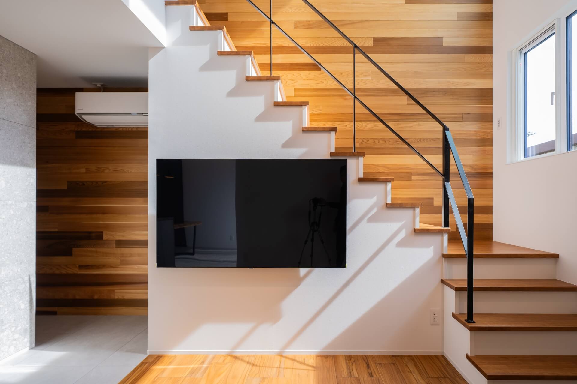大工さんが頑張って壁に付けてくれた壁掛けテレビも良い感じです!